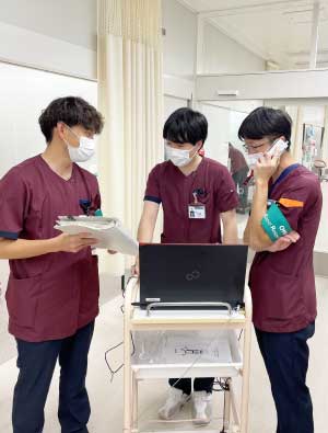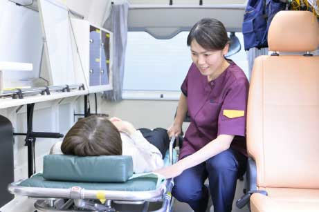 さらに災害拠点病院である当院では、医師、看護師、事務員で構成されたDMAT隊員が、DMATカーを活用し、要請に応え活躍しています。公立病院で初めて救急救命士を採用し、看護師と一緒に日々の救急看護に取り組んでいます。外来診療、救急入院、集中治療と幅広く多くの事を学べ、忙しい中にも使命感を持ち元気に働ける職場です。
