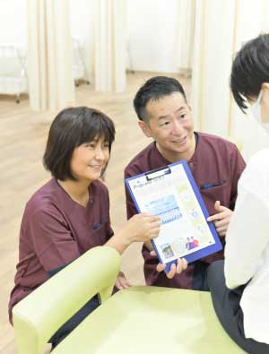 ●脳卒中リハビリテーション看護 脳卒中患者さんの早期離床と、残存機能を活かした日常生活動作のサポートを、リハビリテーション科と連携して行っています。また、患者さんやご家族からの相談窓口も担当し、退院後の生活についても支援を行っています。