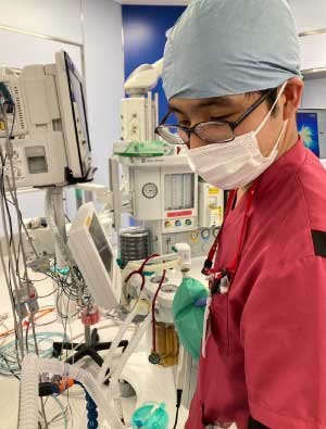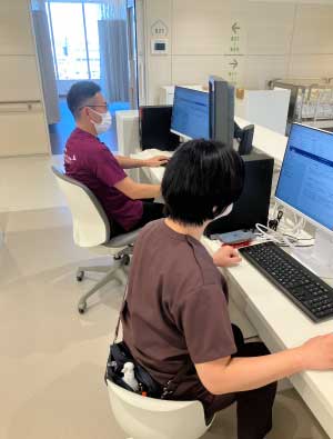 ●集中ケア・クリティカルケア特定認定<集中ケア> 集中治療室(ICU)におけるクリティカルケア看護の促進・支援、早期離床に向けたICUリハビリテーションの計画・評価を担っております。特定行為としては人工呼吸器の設定・調整を患者に併せて実施し、医師や臨床工学技士と評価をしています。また院内迅速急変対応チーム(RRT)の中核として組織横断的に活動をしています。